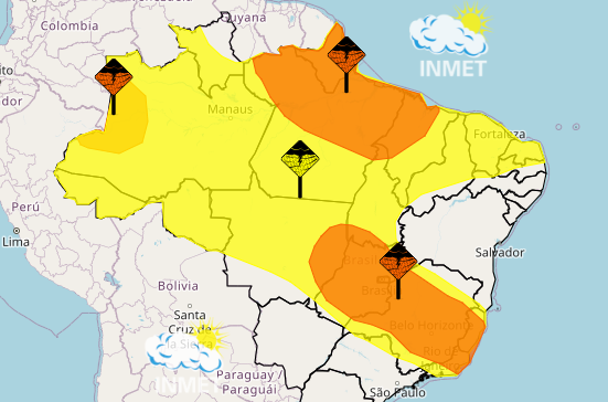 Centro-Norte do Brasil tem alerta para chuvas intensas neste fim de semana